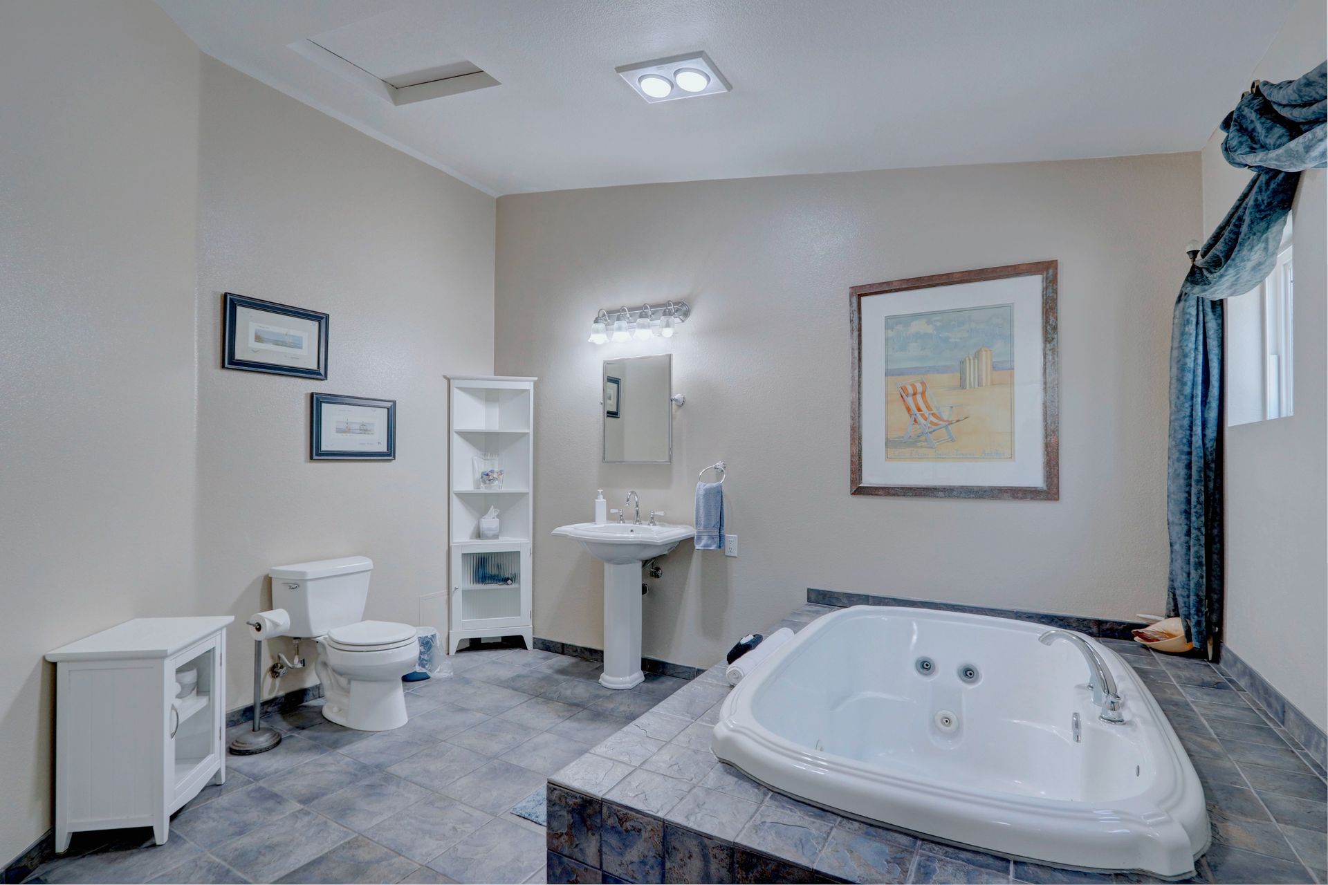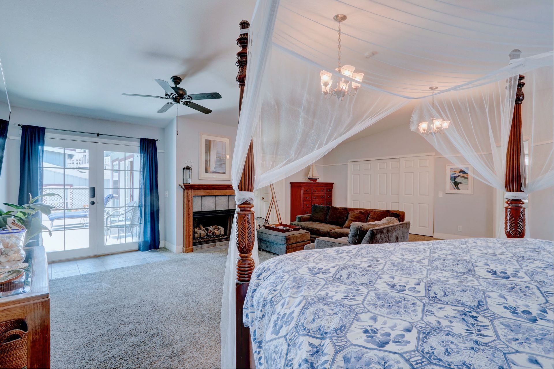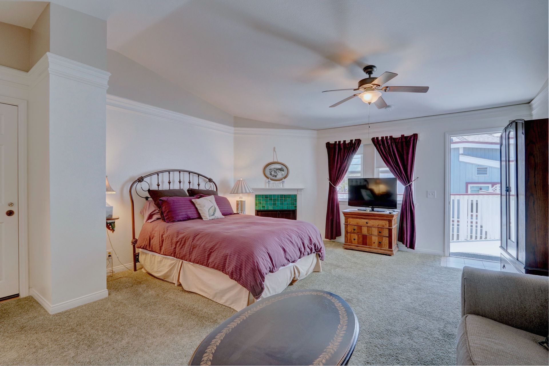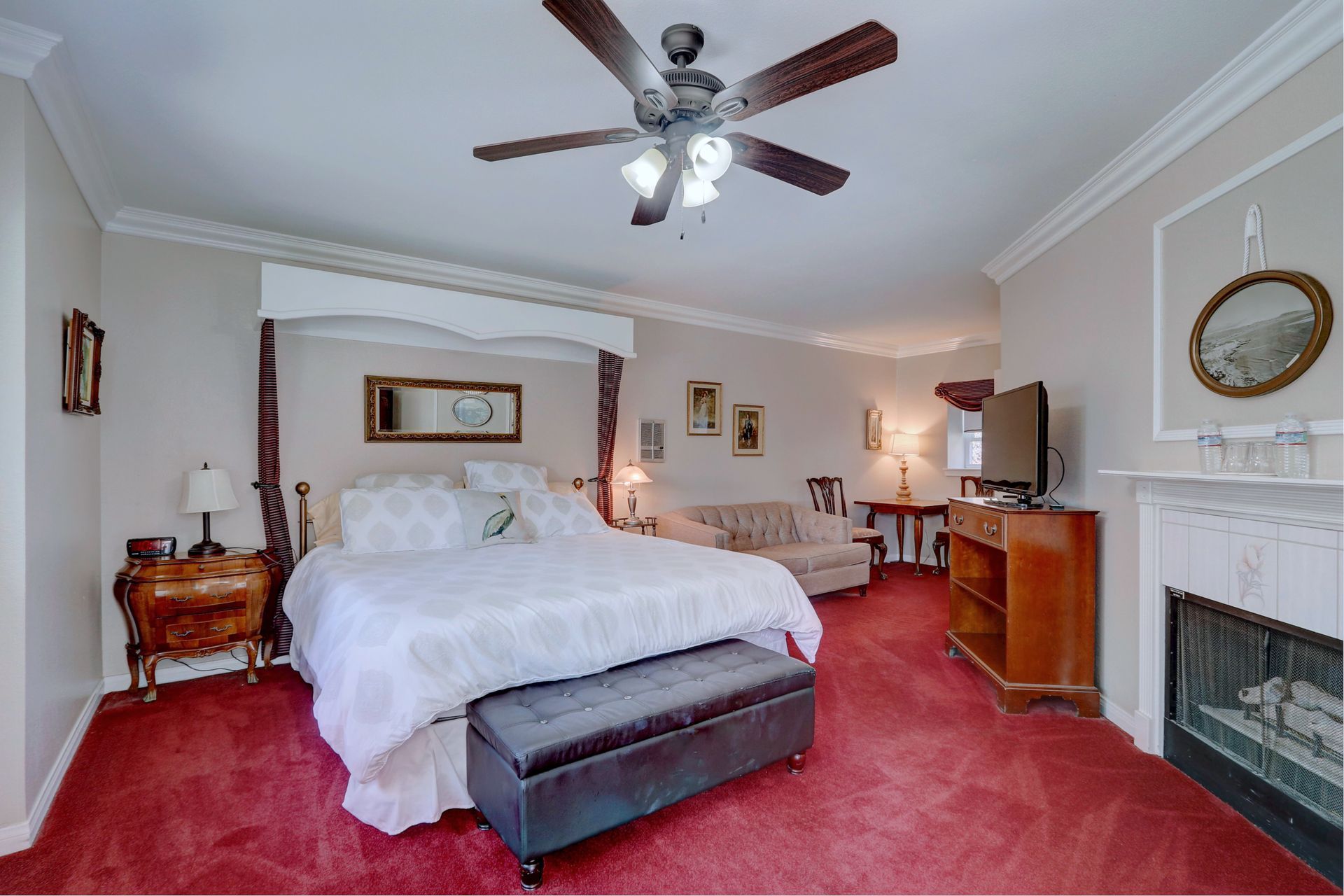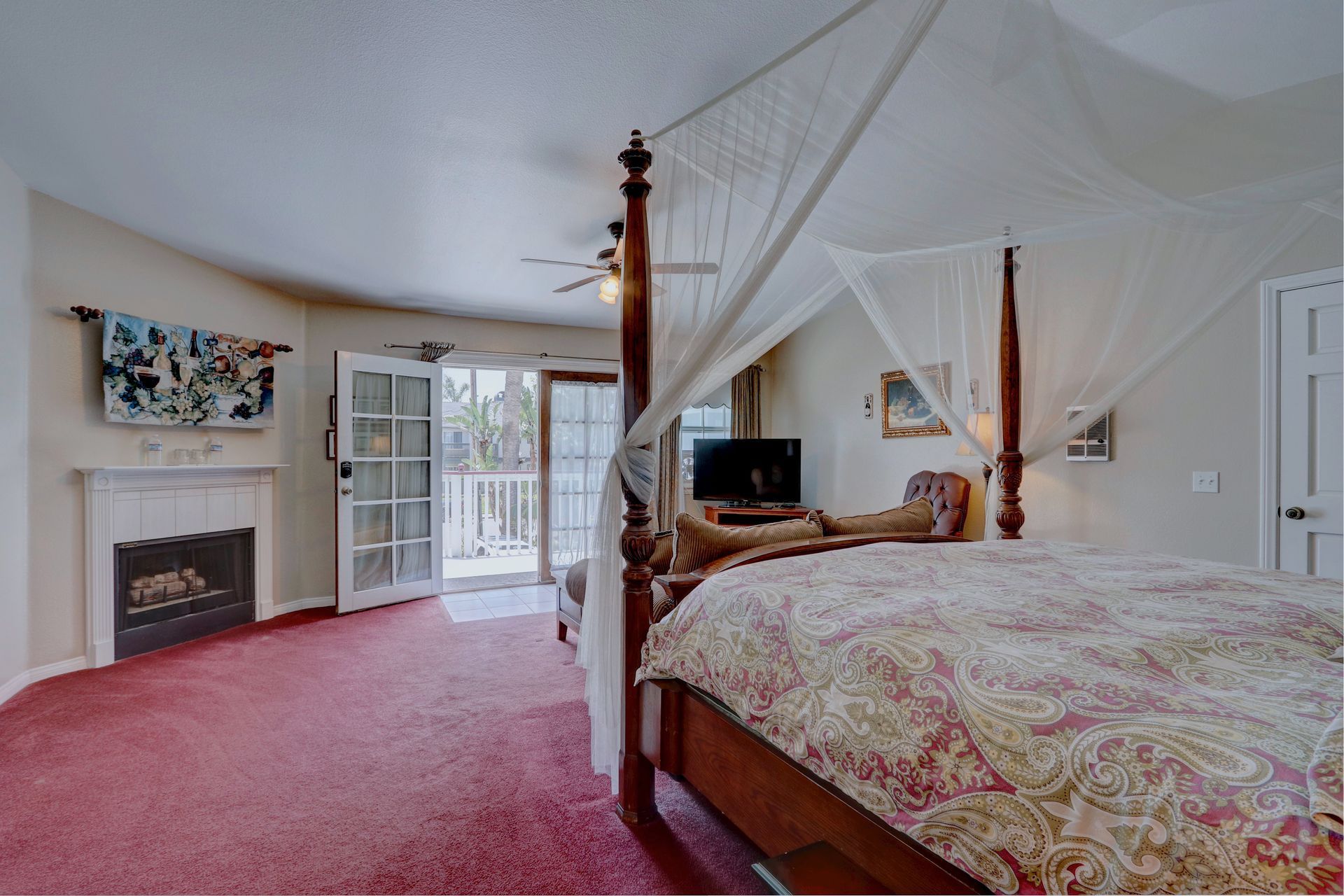 "The Jewel" of our rooms, this romantic room offers many comforts, including a large spa tub, queen bed, window seat and vanity. Windows surround all sides of this black and champagne room. This room can internally adjoin to the Del Mar. Smart TV.