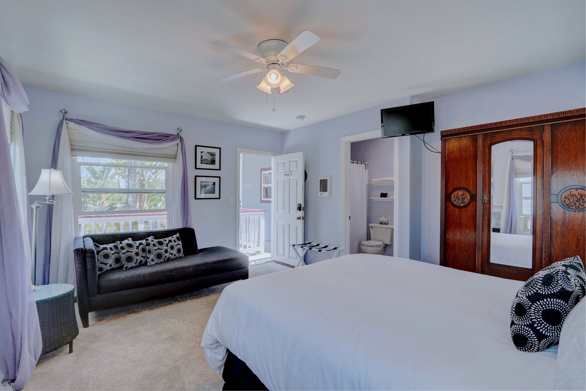 Step back into the Victorian era as you enter the Capistrano room. It features a large king-sized bed and romantic rose decor. Smart TV.